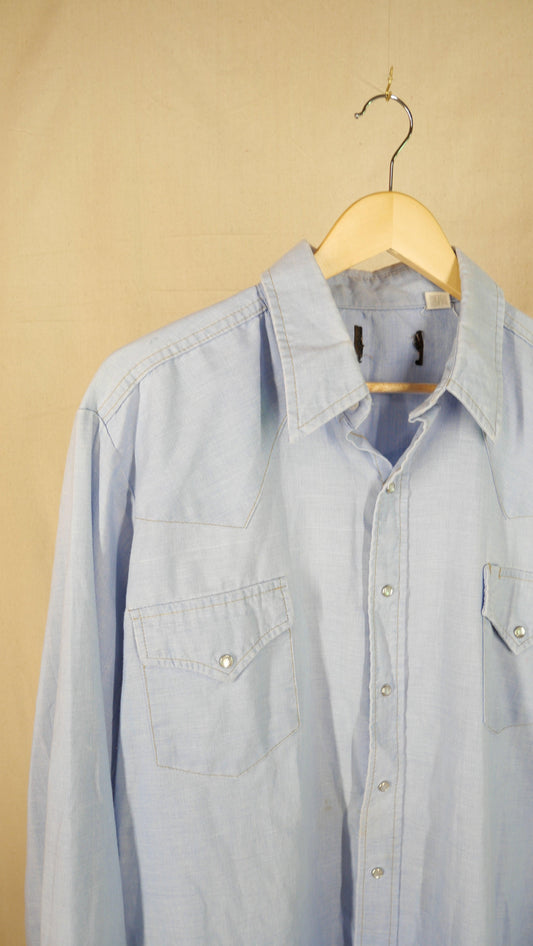 1980s Chambray Pearl Snap | XL
