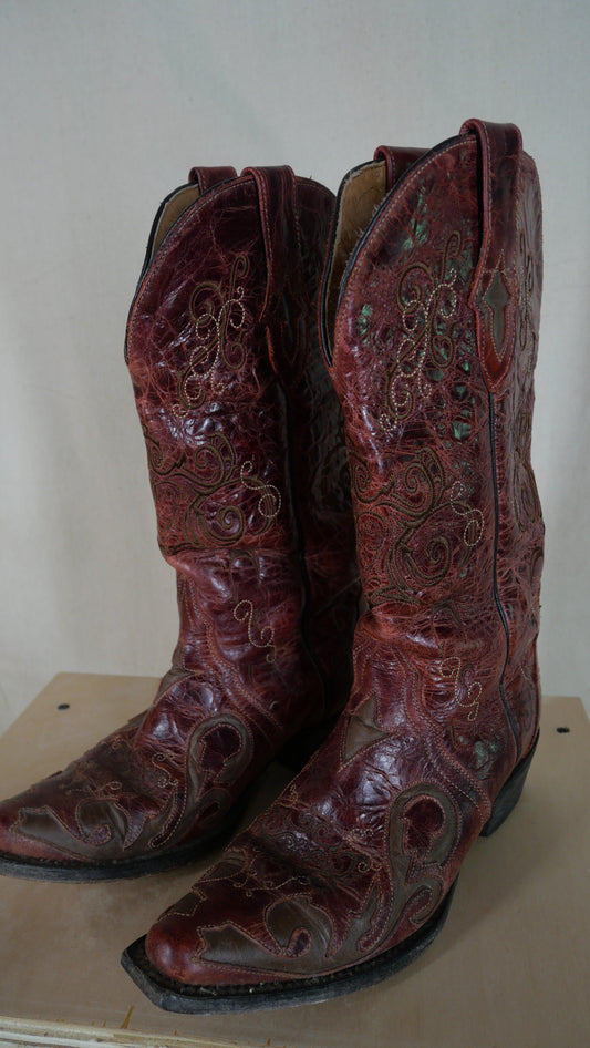 1980s Cherry Leather Cowboy Boots | 5.5